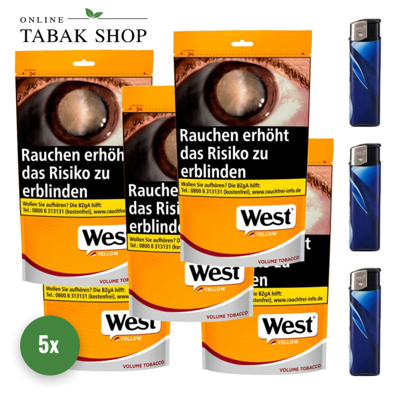 West Yellow Tabak (5 x 155g) + Feuerzeuge Sparpaket