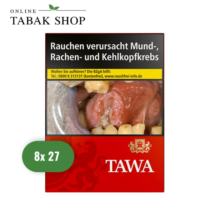Die Marke Tawa wird vom Tabakgiganten JTI (Japan International Tobacco) hergestellt und genießt somit gleiche Produktionsbedingungen wie die bekannten Marken Winston, American Spirit oder Camel. Bekannt ist die TAWA Zigaretten hauptsächlich für ihren fairen Preis bei einer gleichbleibend hohen Qualität. Falls Sie also auf der Suche nach einer günstigen hochqualitativen Alternative zu Ihrer jetzigen Marke sind, ist die Tawa ein zuverlässiger Kandidat. Schauen Sie gerne vorbei, die Tawa Red XXL Zigaretten stehen als 8 x 27er Vorratspack für Sie in unserem Shop zur Verfügung.